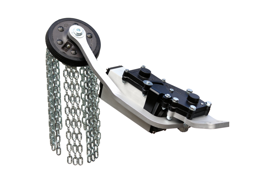 Rotachain is activated from the driver’s cab. This can be done both while driving at a maximum of 20 km/h and at a standstill. When the wheels spin, the chain strands are thrown under the drive wheels. From about 3 km/h, grip is achieved under the wheels. Depending on road conditions, Rotachain can be used at speeds of up to 50 km/h. With Rotachain, you achieve the necessary grip during both forward and reverse driving.